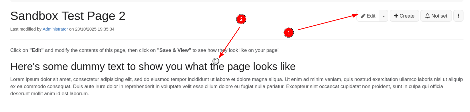 - the rich text editor is loaded for the page edit, or for the content editing of the newly created page