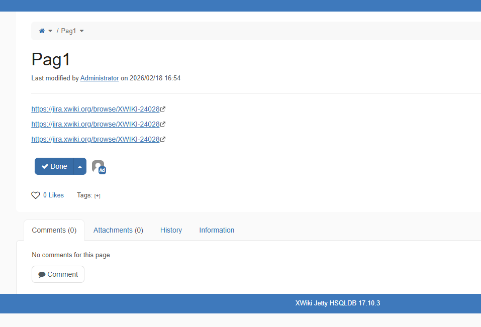 • Windows 11 Pro, Edge 145, using an instance of XWiki 17.10.3 on MySQL 17, Tomcat 11, Java 21