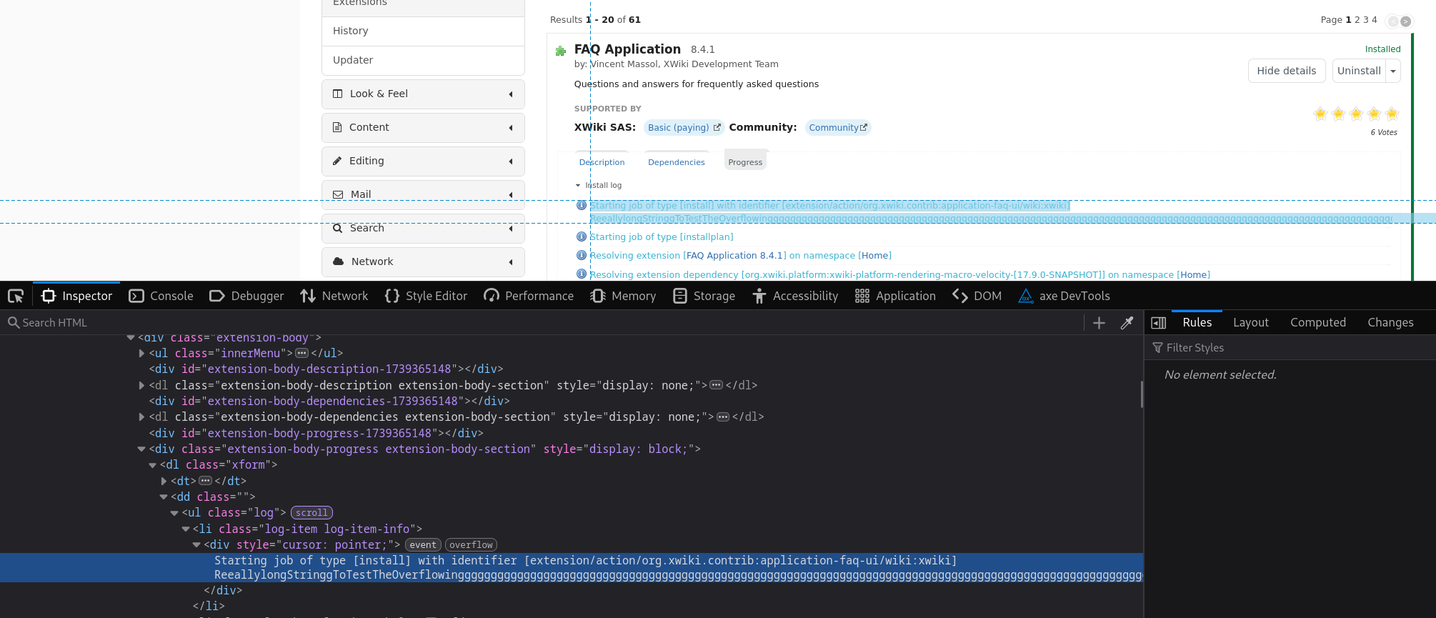 When upgrading from 7.1.2 to 7.2 I got a merge conflict for XWiki.Admin and the text is oveflowing, see screenshot
