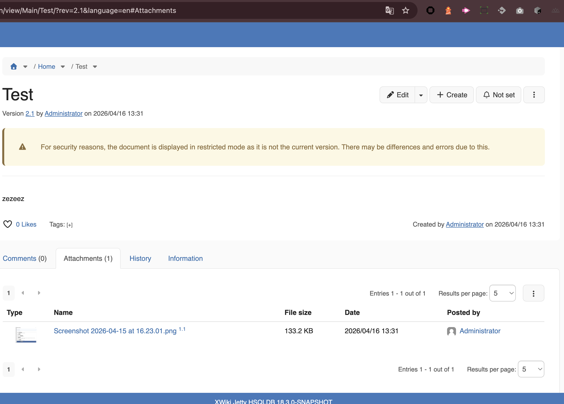 -> you end up with a tab indicating "Attachment (0)" but still listing 2.1 version attachments