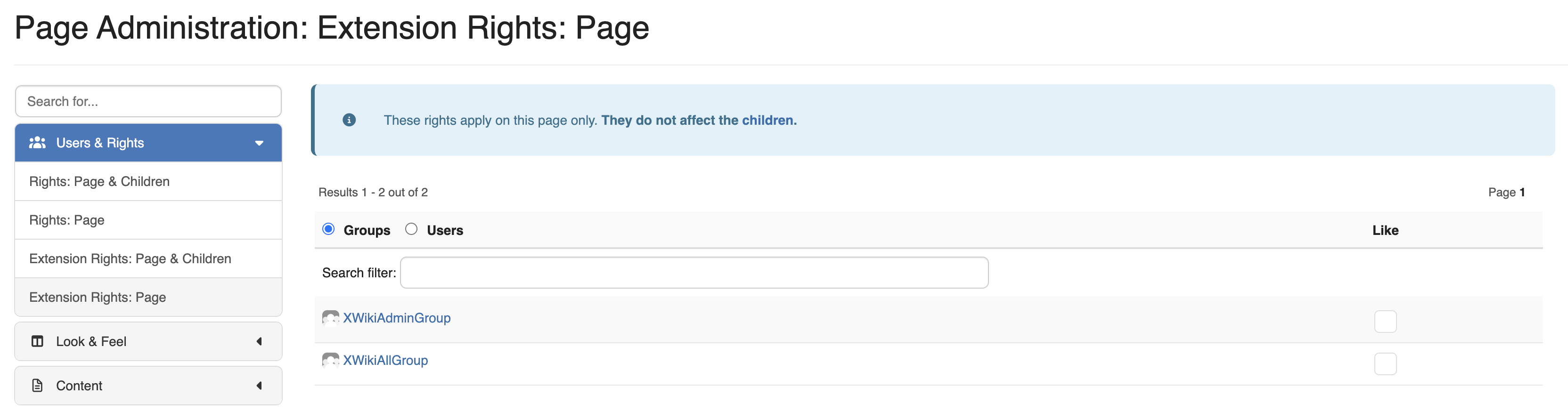 XWIKI-18823 Like right is missing from Page Administration