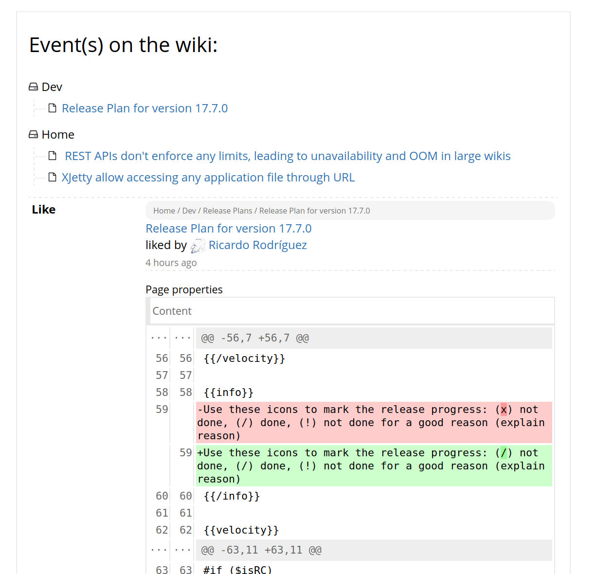 The mail also contains diffs about changes done by user U, which are unrelated to the fact that B liked page X.