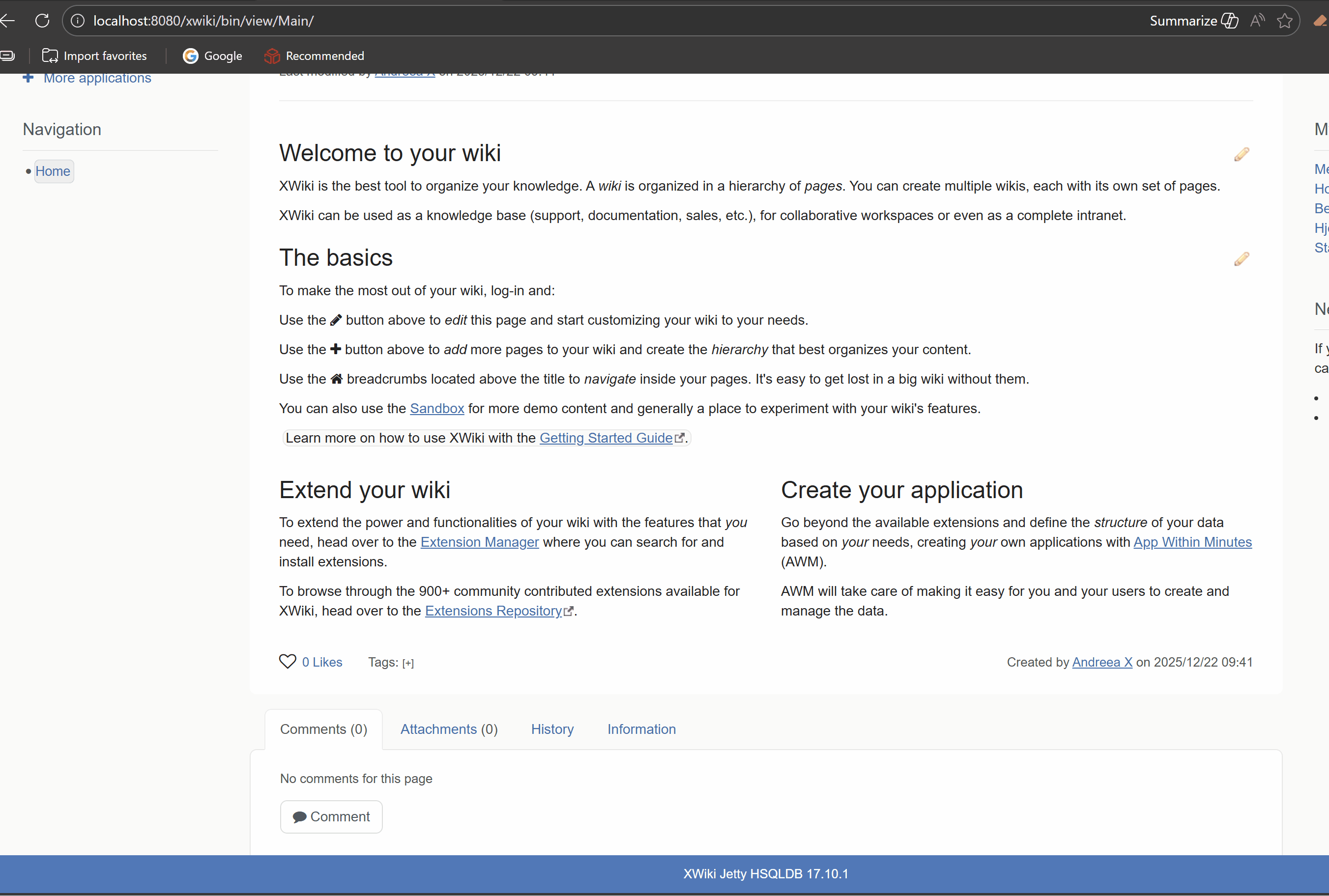 Windows 11 Pro, Edge 143, using an instance of XWiki 17.10.1 on MariaDB 11.8, Jetty 12.0