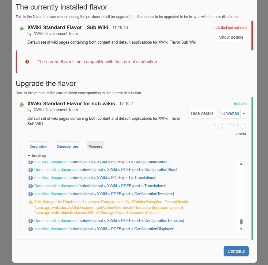 NPE warnings related to "com.xpn.xwiki.doc.XWikiDocument.getAuthorReference" in DW logs when creating an instance of XWiki 17.10.2