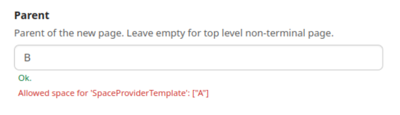 - At final step the validation displays no "ok" and a single error saying that space A should be used