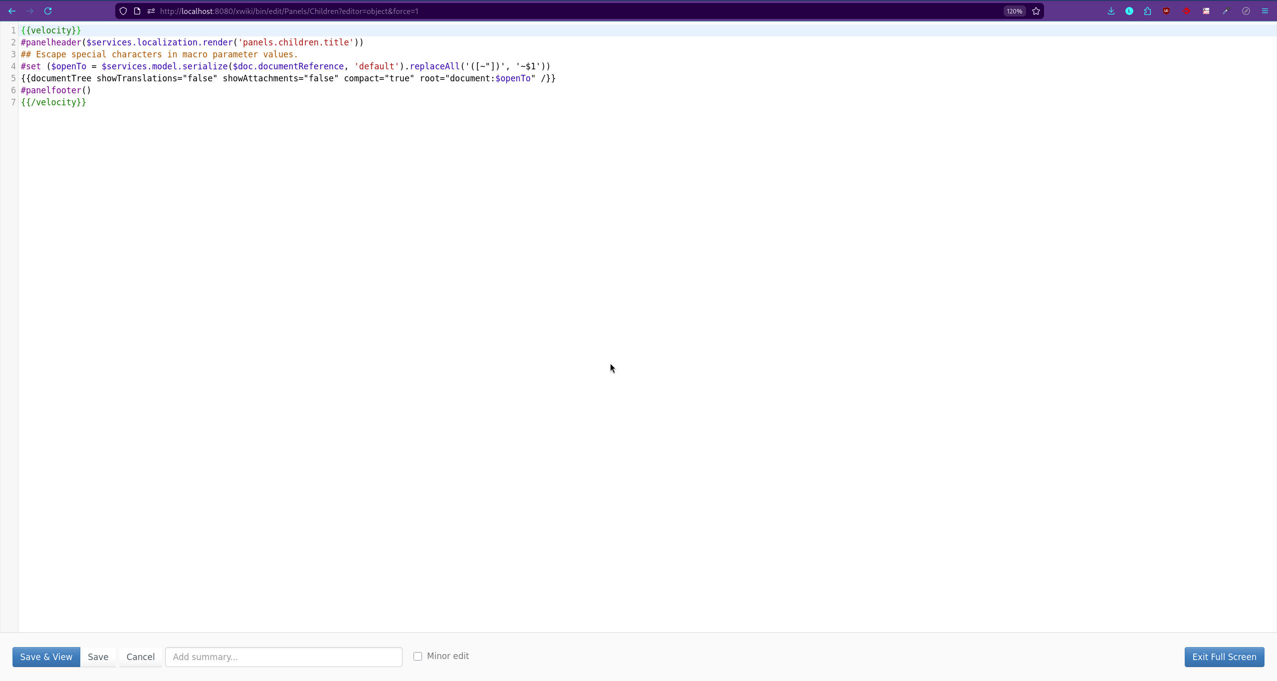 - As admin (advanced) go to http://localhost:8080/xwiki/bin/view/Panels/Children