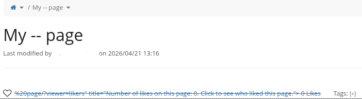 - Create a page with a double dash in the name - for example "My – page"